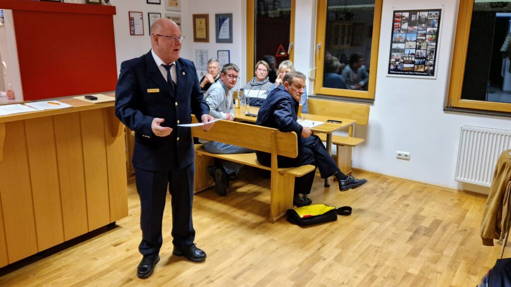 (gm) Am 15. März 2024 fand im Feuerwehrhaus von Nieder-Erlenbach die Jahreshauptversammlung der Freiwilligen Feuerwehr statt. Unter der Leitung des Wehrführers und 1. Vereinsvorsitzenden Bernhard Hahn begann die Versammlung pünktlich um 19:00 Uhr und endete um 19:45 Uhr.
