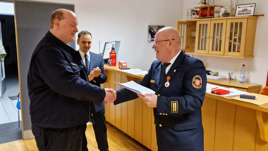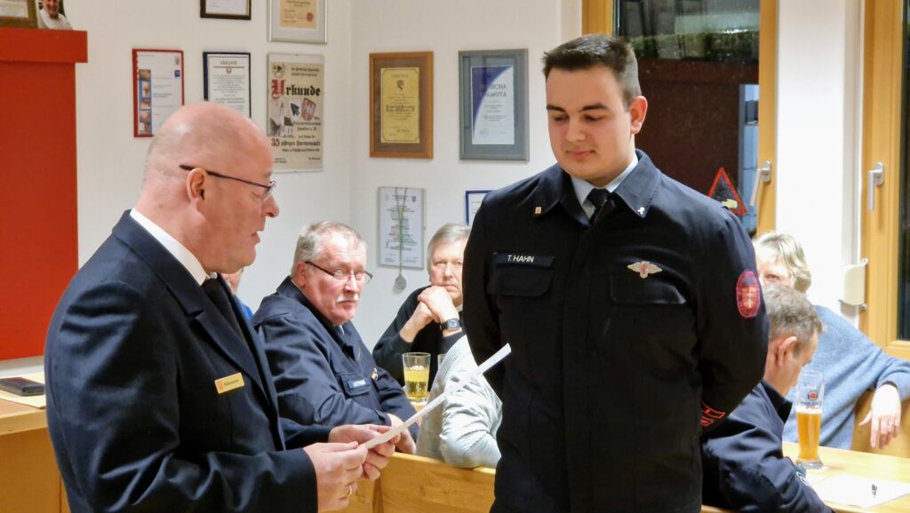 Tim Hahn bedankte sich auch im Namen seines Stellvertreters Johannes Bindriem bei der Wehrführung und weiteren Kameradinnen und Kameraden für die Unterstützung.