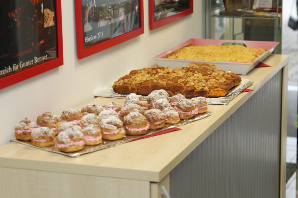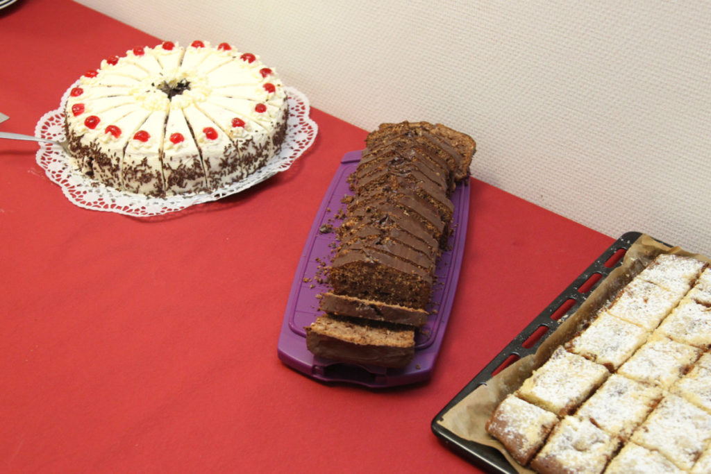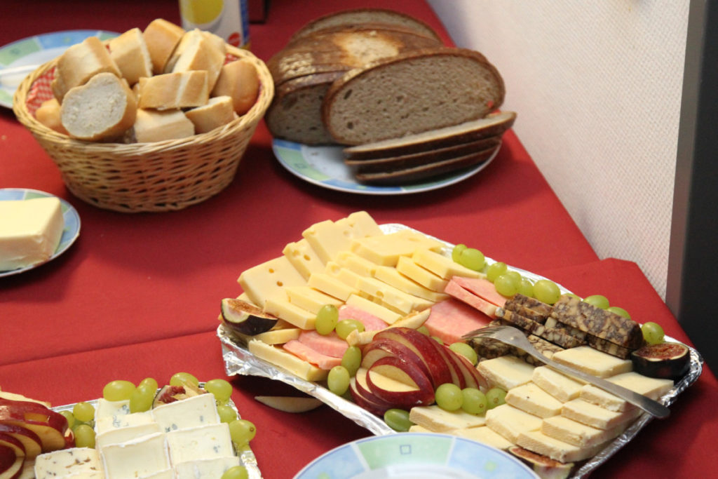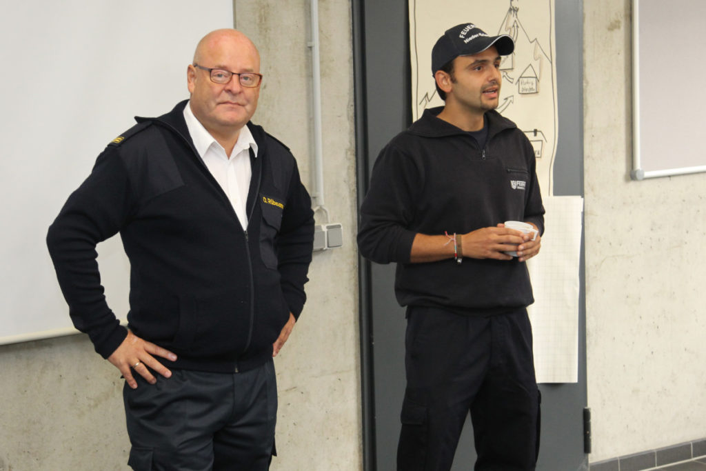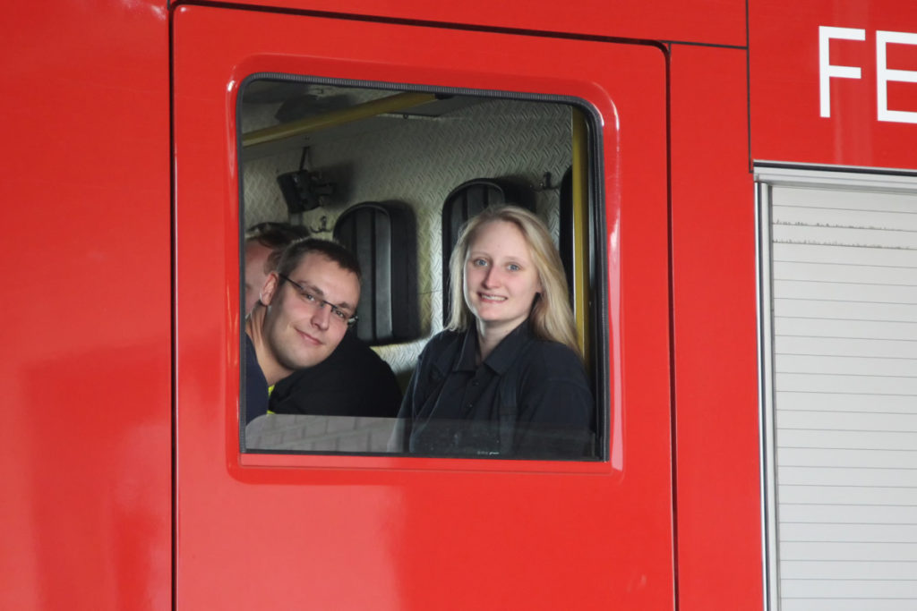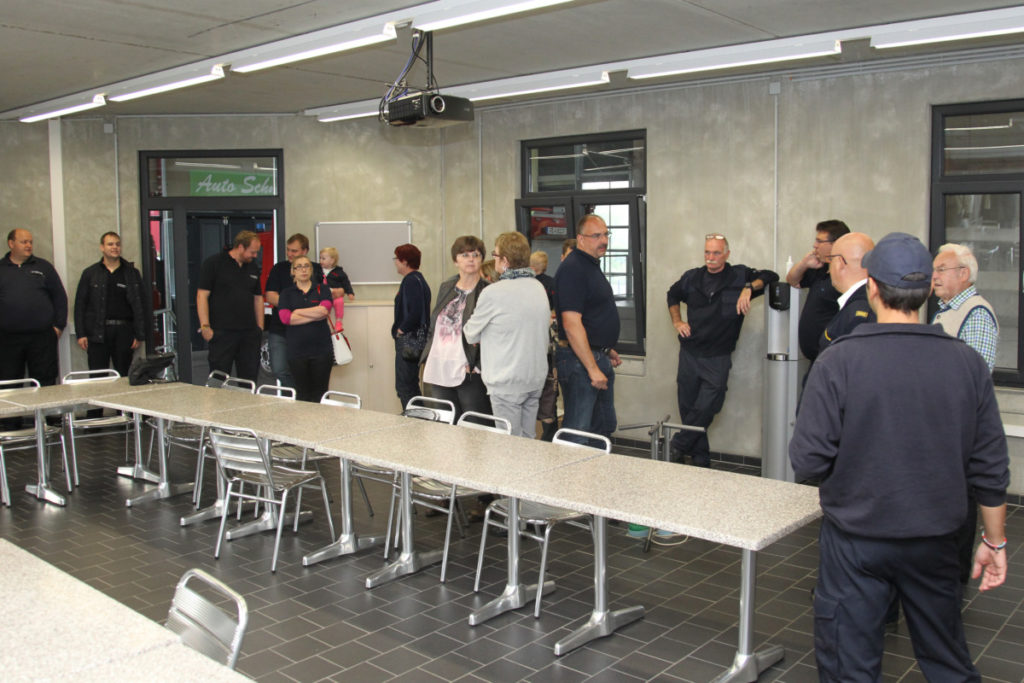 Vor dem nächsten Programmpunkt stärkten wir uns im FRTC mit Lunchpaketen. Anschließend ging es in den Osthafen zur Katastrophenschutzübung „Frankopia“. Eine Staffel unserer Wehr nahm daran teil, unsere Besucher konnten die Übung beobachten. Während unsere Kameraden noch eine sich aus dem Übungsszenario ergebende Dekontamination über sich ergehen lassen mussten, fuhren die Steigerwälder bereits zu unserem Feuerwehrhaus in der Kurmarkstraße. Bei Kaffee und einem riesigen Buffet mit diversen selbstgebackenen Kuchen wurde dann die ruhigere Phase des Besuchs eingeläutet mit privatem Austausch und natürlich auch ein wenig Fachsimpelei.
