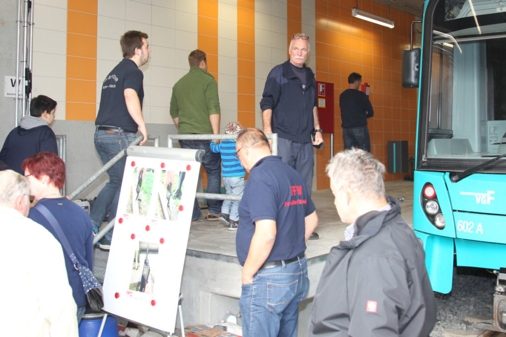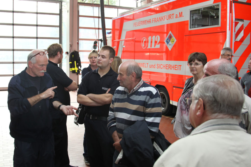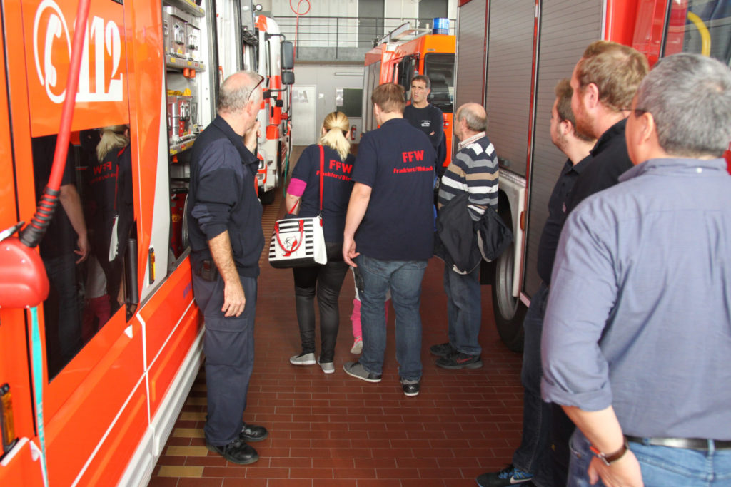 Pünktlich um 10 Uhr traf unser Besuch in einem Reisebus im FRTC ein. Nach der Begrüßung und einem kleinen Frühstück führte uns Matthias Schmidt durch das Ausbildungszentrum der Frankfurter Feuerwehr mit der großen Halle und dem U-Bahnhof. Anschließend konnten wir kurz die Leitstelle besichtigen. Die Führung endete in der Fahrzeughalle des BKRZ, wo Matthias die dort stationierten Sonderfahrzeuge erklärte.