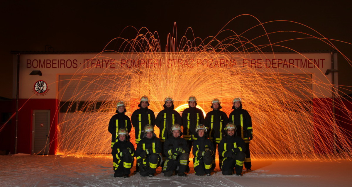 Am vergangenen Samstag Abend traf sich der derzeit nicht vergrippte Teil unserer Einsatzabteilung, um zur Verschönerung der Flurwände unseres Feuerwehrhauses einige besondere Gruppenfotos zu machen. Angedacht war ein feuriges "heißes Shooting".
