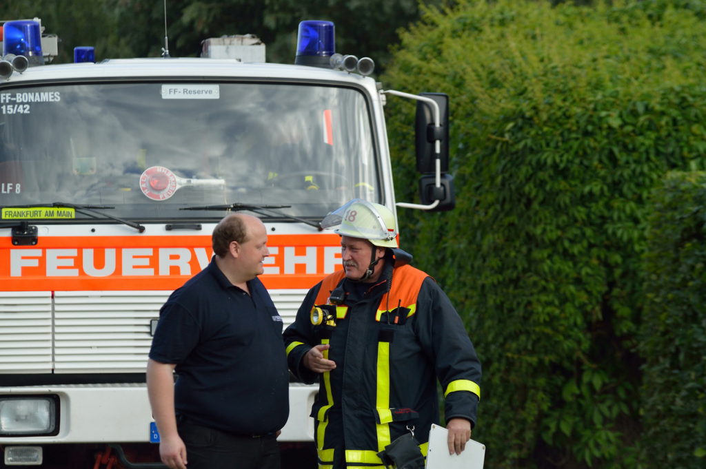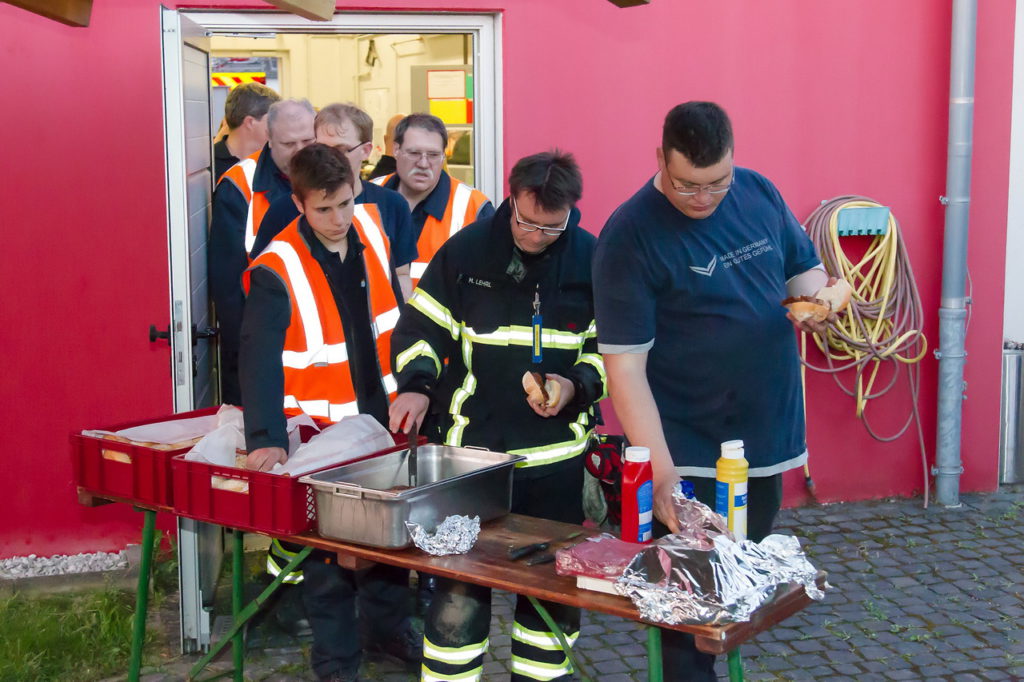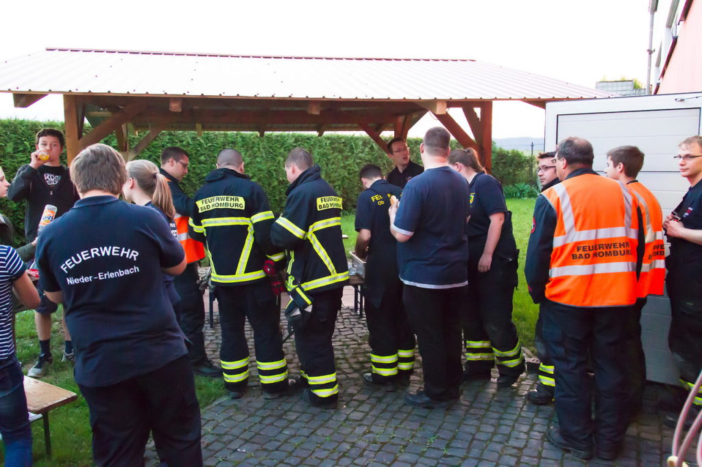 Nach Übungsende trafen sich alle Beteiligten in unserem Feuerwehrhaus in der Kurmarkstraße. Dort gab es zuerst die Übungskritik und anschließend im Garten einen kleinen Imbiß mit der Gelegenheit zum gegenseitigen Austausch und zur Besichtigung unserer Räumlichkeiten. Die Übung war aus unserer Sicht nicht nur erfolgreich, sondern hat auch soviel Spaß gemacht, dass im kommenden Jahr eine gemeinsame Erlenbacher Übung in Ober-Erlenbach geplant ist.