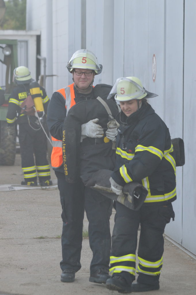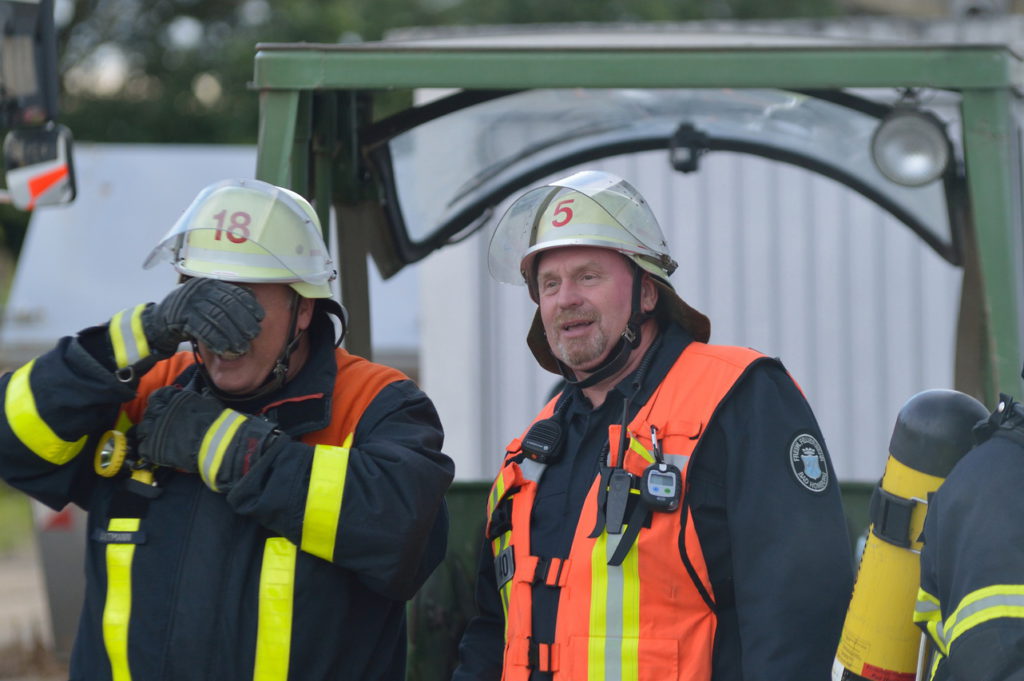Im Szenario fand auf dem Aussiedlerhof unseres Mitglieds der Alters- und Ehrenabteilung, Karl-Heinz Laupus, im Lager für landwirtschaftliche Geräte eine größere Feier statt. Im Rahmen der Feier kam es zu einem Getränkeengpass, der von einem der Feiernden behoben werden sollte. Bedingt durch seinen bisherigen Getränkekonsum übermannte ihn auf dem Weg zum Keller die Müdigkeit, er schlief in der gegenüberliegenden Scheune ein und seine brennende Zigarette setzte das Heu in Brand. Parallel kam es in der Halle zu einem Kurzschluß, der einen Schmorbrand mit starker Rauchentwicklung auslöste. In der darauffolgenden Panik löste sich die Parksicherung eines landwirtschaftlichen Fahrzeuges und klemmte einen Partygast ein.