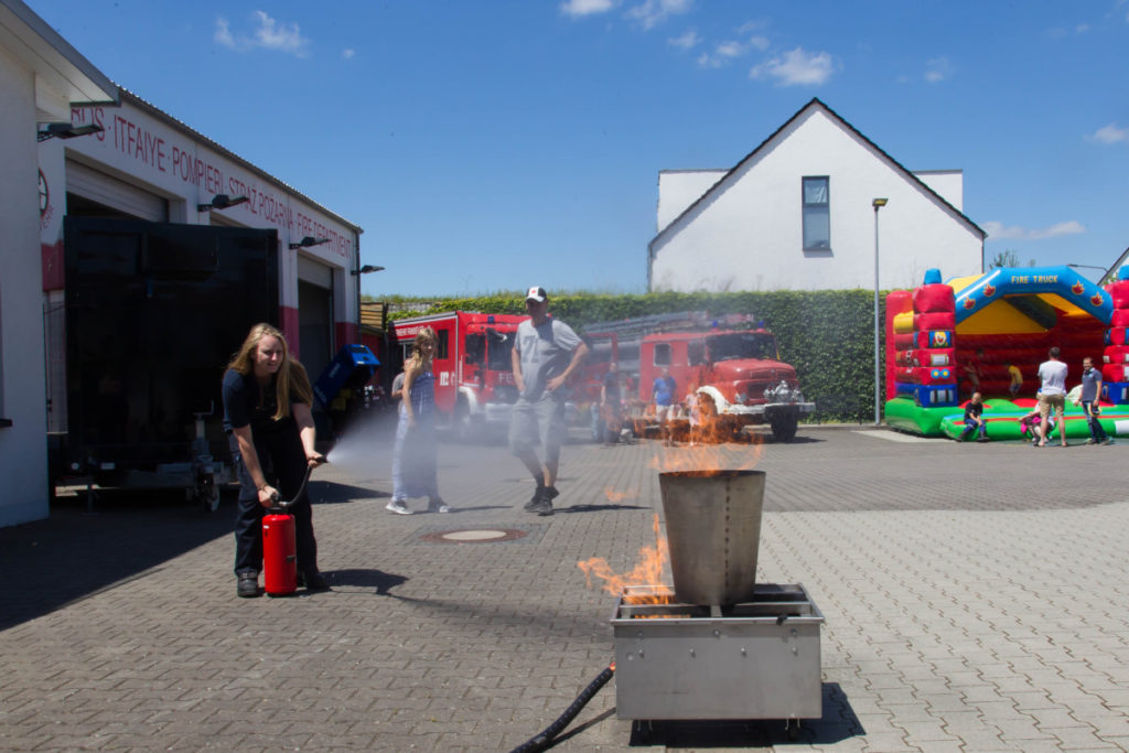 Wir freuen uns sehr, dass wir in diesem Jahr trotz weiterer großer Veranstaltungen in der Region so viele Nieder-Erlenbacher und Gäste von weiter her begrüssen konnten. Die Kinder tobten sich wie in jedem Jahr auf der Hüpfburg und der Rollenrutsche aus und saßen schon in den bereitstehenden Feuerwehrfahrzeugen probe. Beim Team vom Crash Instructor wurde mit den bereitgestellten Feuerlöschern ordentlich geübt, wie man kleinere Brände damit bekämpfen kann.