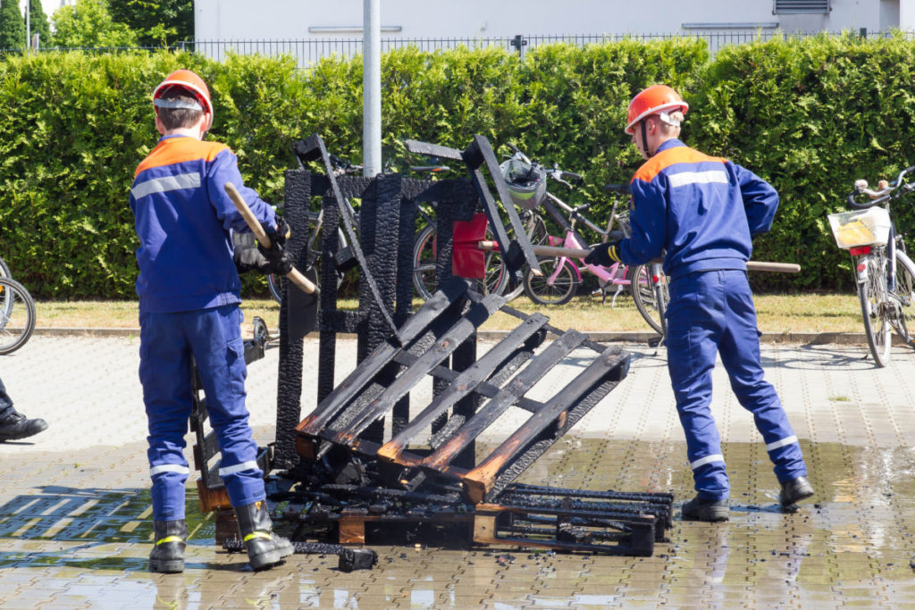 Am späteren Nachmittag zeigte unsere Jugendfeuerwehr ihr Können: Brennende Holzpaletten wurden vom Angriffstrupp mit dem Schnellangriff gelöscht, während der Wassertrupp eine Wasserversorgung vom Hydranten aufbaute. Nachdem das Feuer geköscht war, wurden die verkohlten Überreste des Brandes auseinandergezogen und kontrolliert.