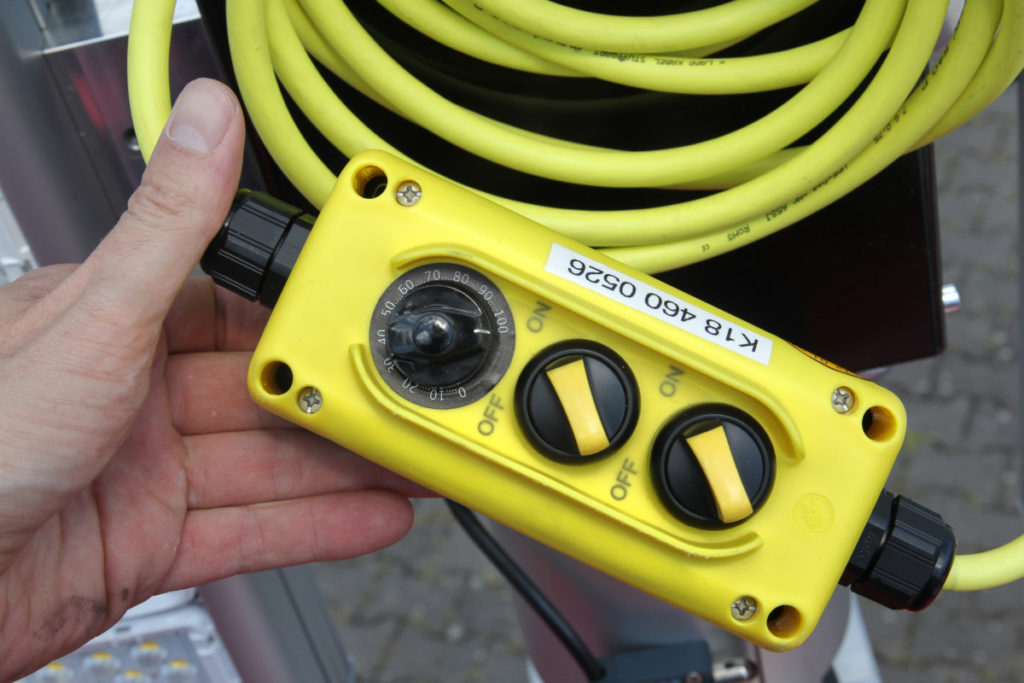 Der Geräteanhänger kann über längere Zeit abgesetzt betrieben werden. Die Elektronik überwacht dabei ständig die Betriebsparameter. Falls ein Fehler auftritt, wird dies akustisch durch einen Alarm und optisch durch eine rote Rundumkennleuchte signalisiert, die vor Aufnahme des Betriebs aufgesteckt wird. Für den Betrieb im Winter verfügt der Anhänger über die Möglichkeit, sowohl den Motor als auch den Kraftstoff vorzuwärmen.