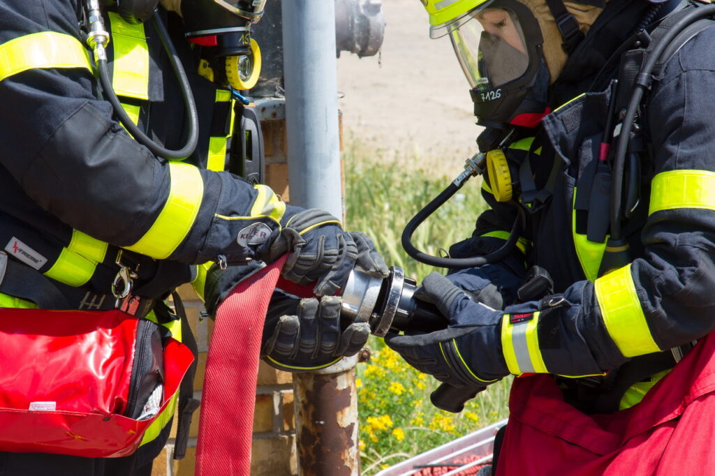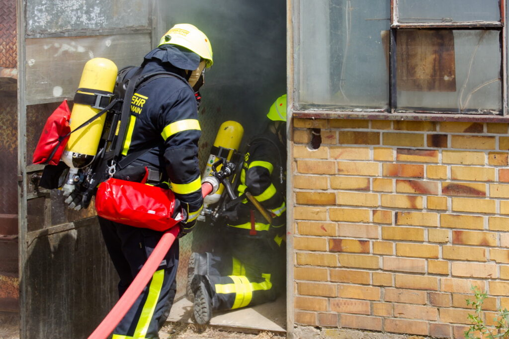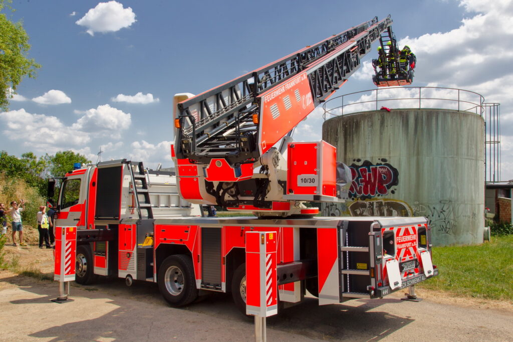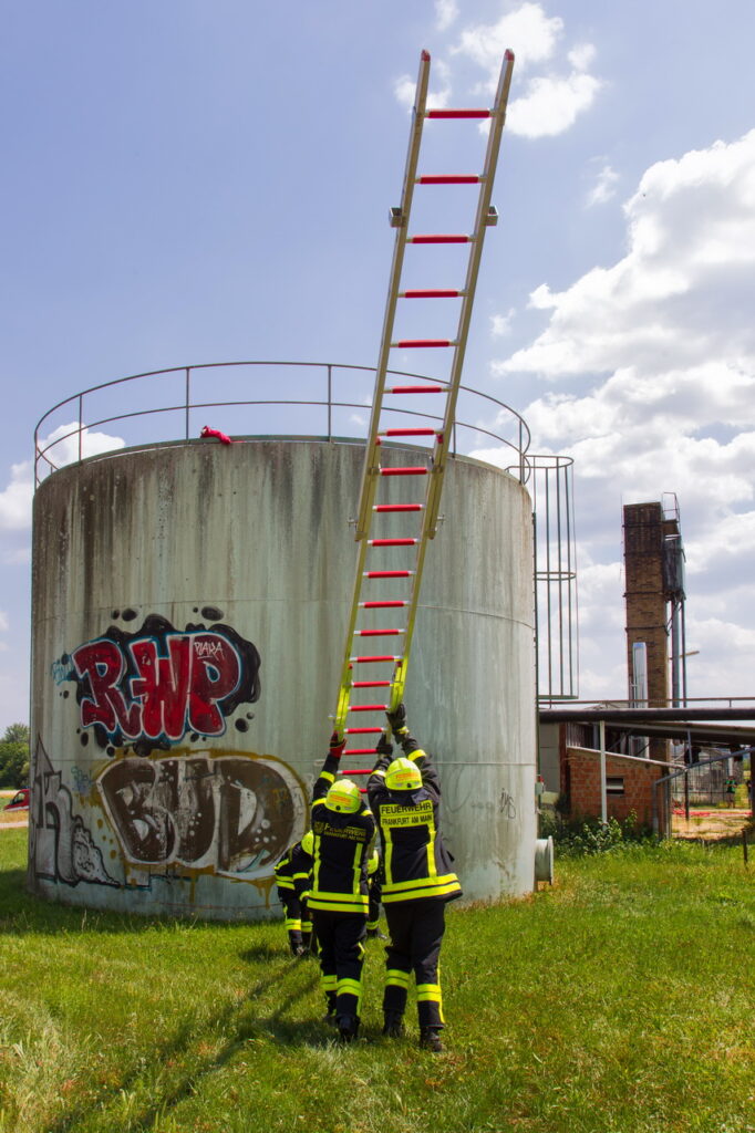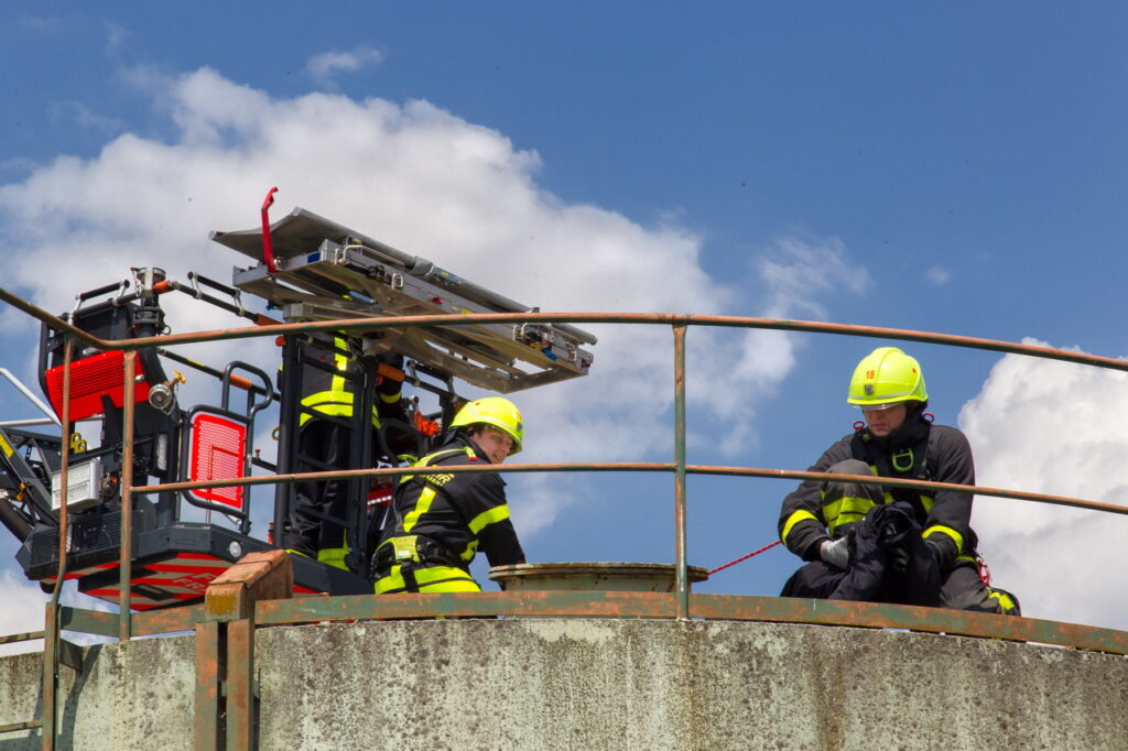 Nach einer ersten Erkundung wurden lagebedingt weitere Einsatzkräfte angefordert. Während die Rettung der Kinder vom Tank durch die Besatzung einer Drehleiter und eines Kleinalarmfahrzeugs anlief, begannen die Besatzungen zweier weiterer Löschfahrzeuge umgehend mit Lösch- und Rettungsarbeiten in der Heizzentrale und dem nebenstehenden Gebäude.