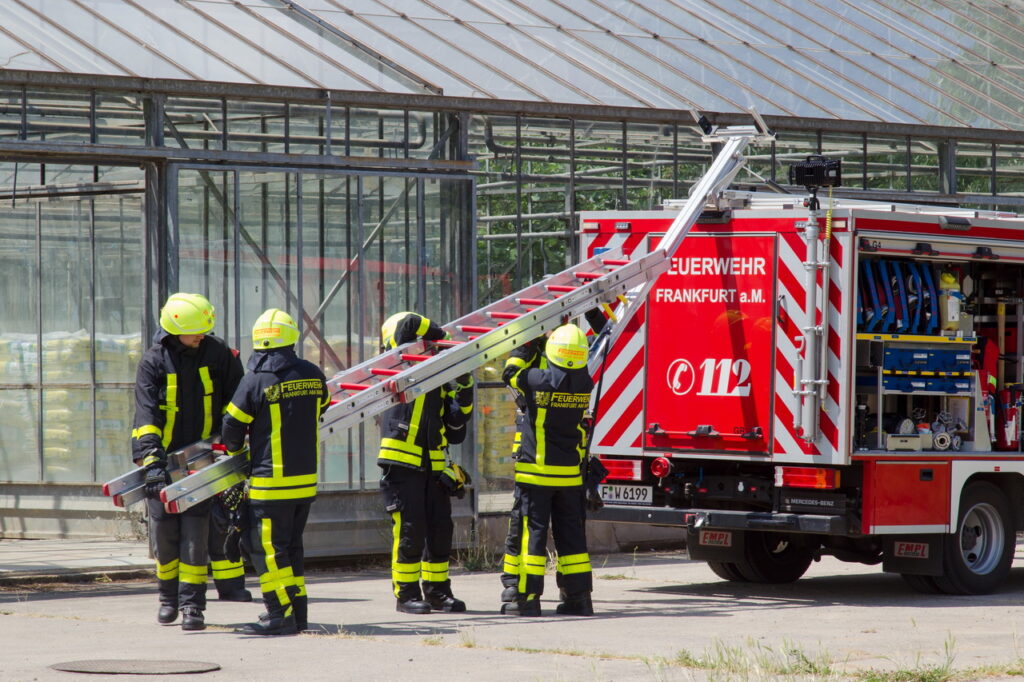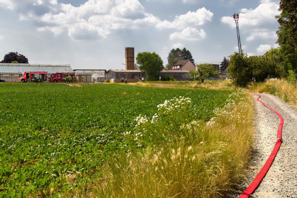 Im ländlich geprägten Frankfurter Norden gibt es im Gegensatz zur Kernstadt viele Liegenschaften und Areale, die nicht an ein zur Brandbekämpfung ausreichendes Hydrantennetz angeschlossen sind. Die Übung verschaffte den Einsatzkräften die Gelegenheit, nicht nur ein großes landwirtschaftliches Objekt im Einsatzbereich besser kennenlernen zu können, sondern auch das bei Wald- und Flächenbränden wichtige Erschließen von Löschwasserquellen im Gelände zu üben. Für die Gelegenheit, die Übung auf ihrem Gelände durchführen zu können, bedanken wir uns deswegen herzlich bei der Gärtnerei Kunna und unserem stellvertretenden Wehrführer Thomas Lohmann, der federführend bei der Planung beteiligt war!