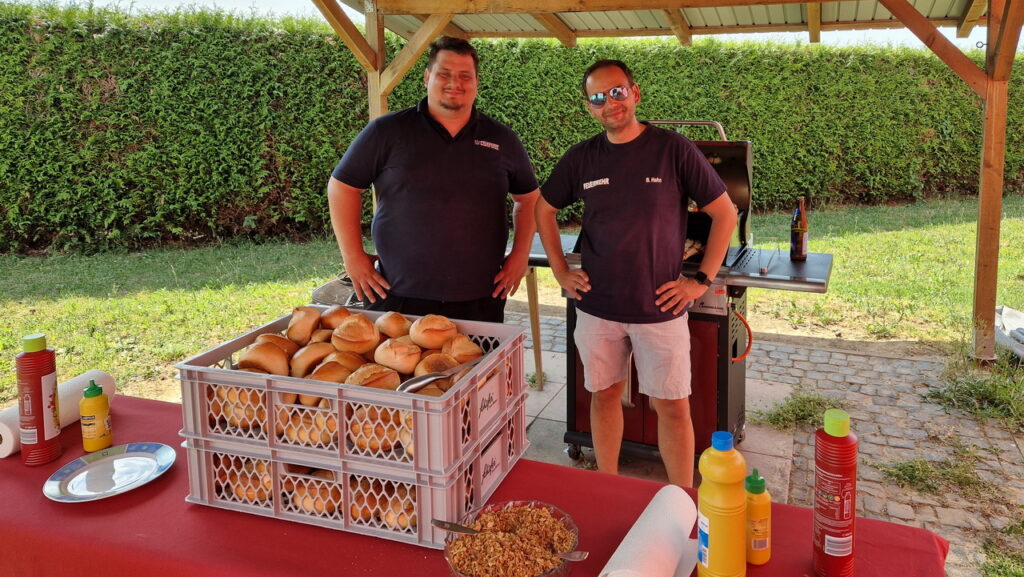 Nachdem die Verletzten gerettet und die Brände gelöscht waren, trafen sich alle Einsatzkräfte zur Nachbesprechung im Feuerwehrhaus der Freiwilligen Feuerwehr Nieder-Erlenbach. Die Übungsbeobachter teilten ihre Erkenntnisse mit den Übenden und zogen ein positives Fazit. Anschließend wurde beim gemeinsamen Grillen nicht nur der Hunger gestillt, sondern auch das durch die anstrengenden Tätigkeiten bei sonnigen 28° hervorgerufenen Flüssigkeitsdefizit ausgeglichen.