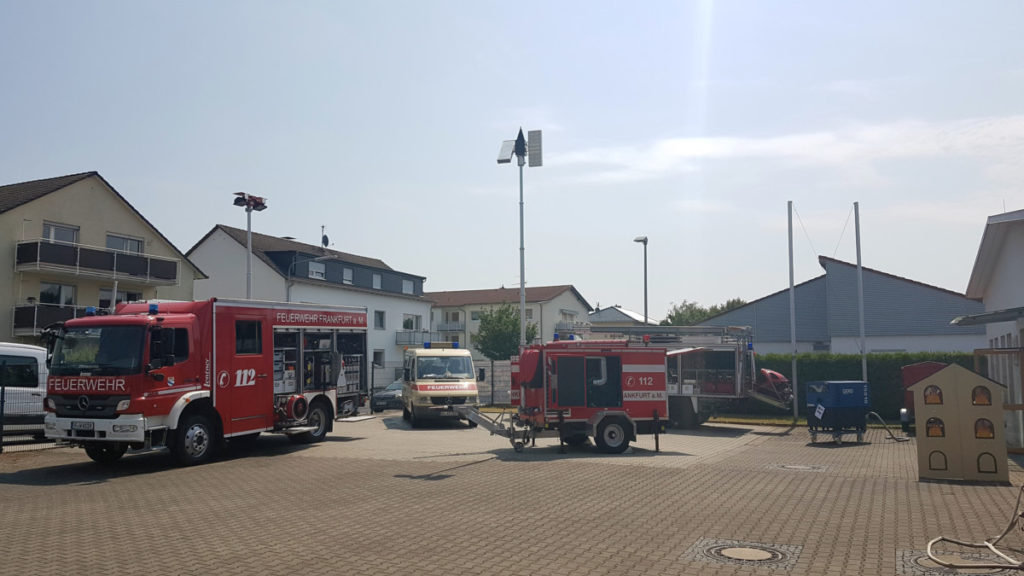 Die Besucher, die trotz einsetzenden Regens noch bis 21:30 Uhr in unserer Fahrzeughalle weiterfeierten, haben noch mitbekommen, dass sich eine allmählich etablierende Tradition fortgesetzt hat. Auch an diesem Feuerwehrfest kamen wir nicht ohne Alarmierung davon. Der abendliche Regen fiel über Frankfurt viel stärker als über Nieder-Erlenbach. Deswegen musste um halb zehn eine Staffel mit unserem Löschgruppenfahrzeug ausrücken und an zwei Einsatzstellen Wasser pumpen. Um 0:30 Uhr war auch für die Kameraden ein langer Tag schließlich beendet.