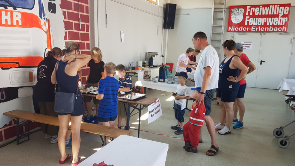 Unser Angebot war vielfältig: Neben kühlen Getränken und leckerem Essen aus der Grillhütte für alle konnten sich die kleinen Besucher auf der Hüpfburg austoben. In diesem Jahr war auch unser Fotostand wieder im Angebot, wo „Einsatzfotos“ in Feuerwehrkleidung aufgenommen und direkt anschließend ausgedruckt mit nach Hause genommen werden konnten. Mittlerweile sind in einigen Nieder-Erlenbacher Familien nach der Rückmeldung der Besucher schon richtige Bilderwände mit diesen Fotos aus den letzten Jahren entstanden.