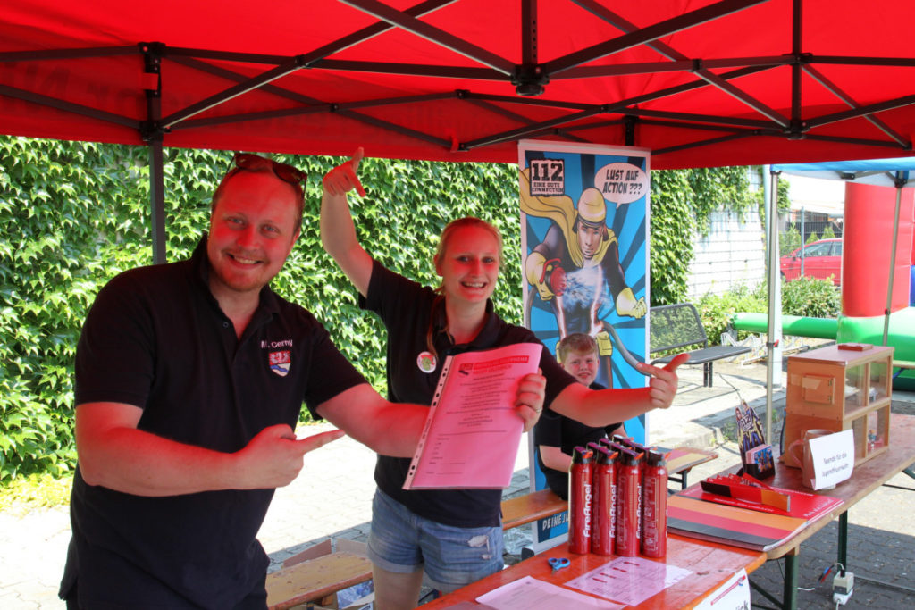 Am Infostand konnten sich unsere Besucher über Brandschutz sowie unsere Mitmach-Angebote für Mini- und Jugendfeuerwehr, aber natürlich auch für unsere Einsatzabteilung informieren. Die Minifeuerwehr bastelte zusammen mit den Kindern kleine Feuerlöscher, die mittels Kohlenstoffdioxid ein brennendes Teelicht löschen konnten.