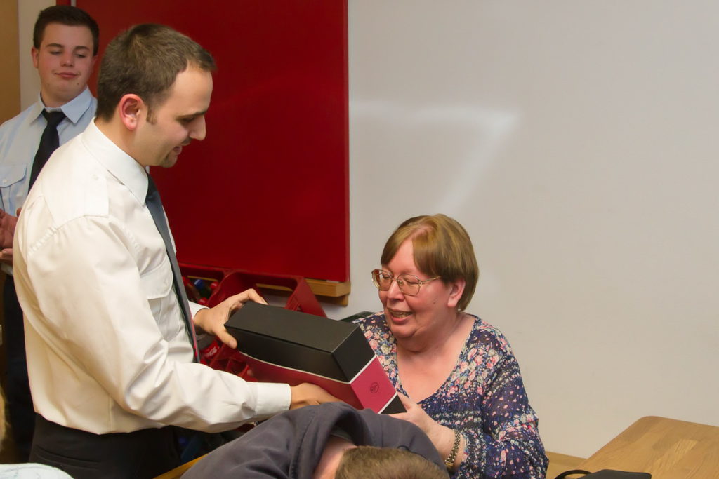 Danach bedankte sich Wehrführer Bernhard Hahn mit kleinen kulinarischen Aufmerksamkeiten für die Unterstützung bei diversen Gelegenheiten, wie unserem Feuerwehrfest, bei den „guten Seelen“ Marianne Lenz, Petra Axtmann, Jutta und Horst Möller und Anja Odemer. Georg Mahler erhielt ein süßes Dankeschön für die Betreuung und Modernisierung unserer Homepage im vergangenen Jahr.