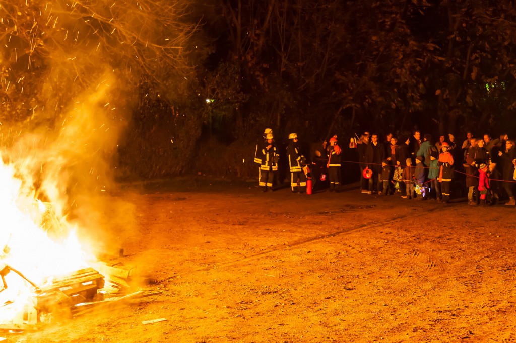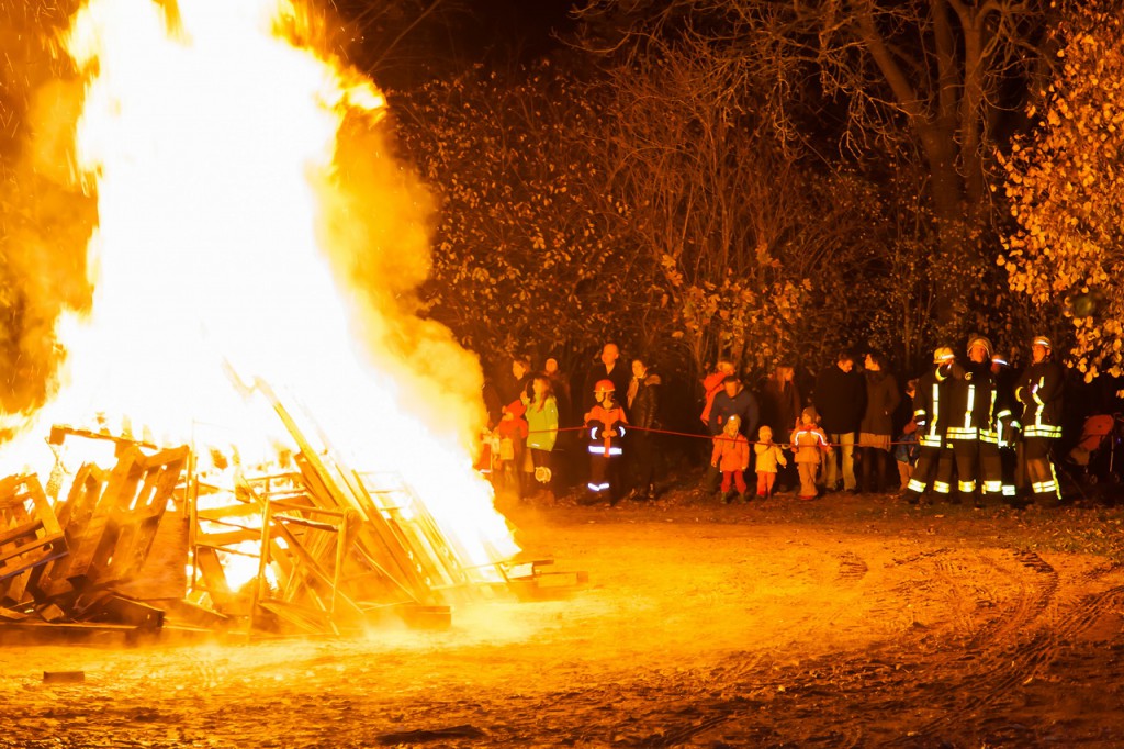 Die Nieder-Erlenbacher Freiwillige Feuerwehr entzündete kurz nach 18 Uhr das Martinsfeuer neben dem Bolzplatz am Bürgerhaus, dem Endpunkt des Martinsumzuges. Das Martinsfeuer wärmte sowohl die Großen als auch die Kleinen, eine Kapelle spielte dazu Martinslieder. Die Mitglieder der Jugendfeuerwehr hatten mit einer Leine eine Sperrzone markiert, damit niemand dem mächtigen Feuer zu nahe kam.