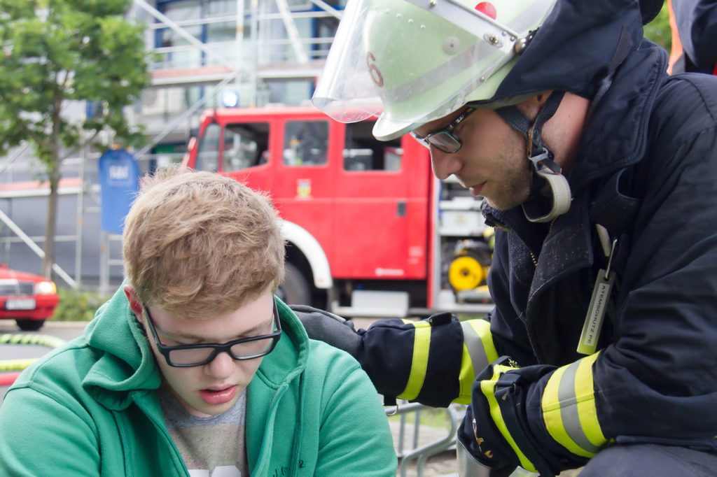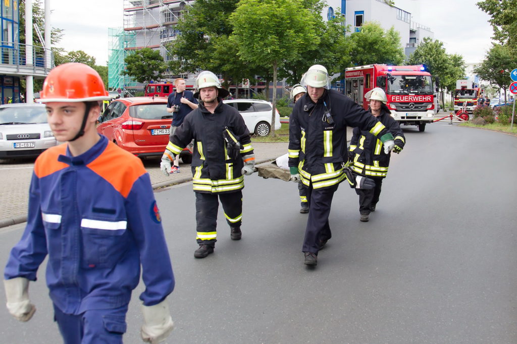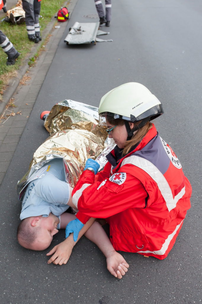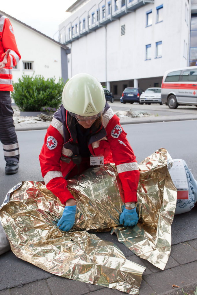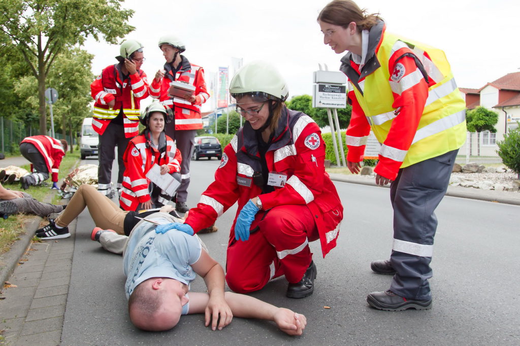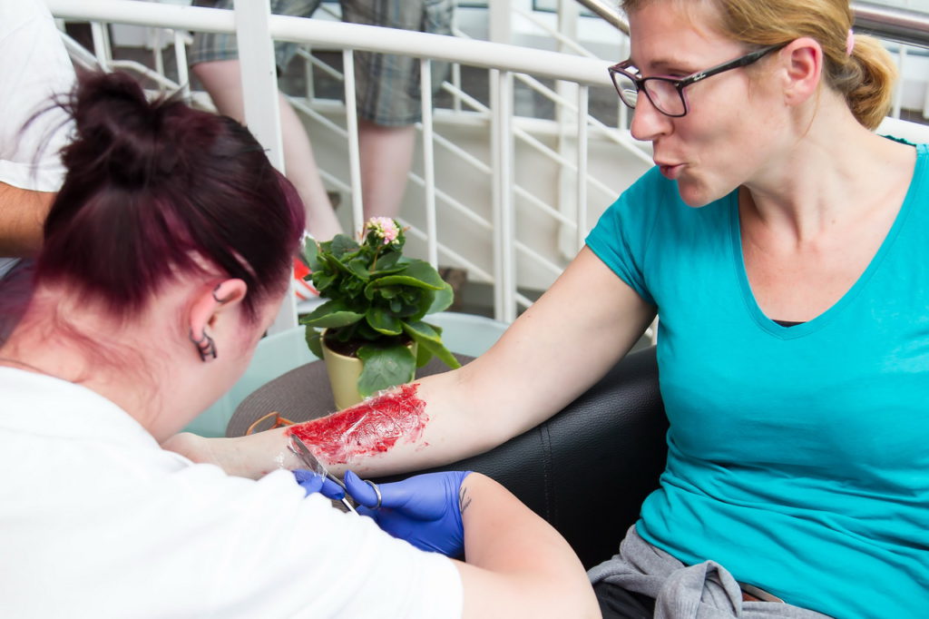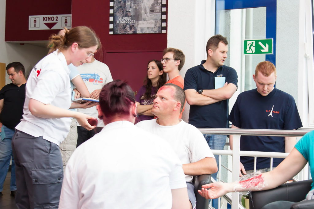 Das DRK Karben stellte dafür 20 Verletztendarsteller, die vor der Übung in eigener Regie geschminkt und für die realistische Darstellung ihrer Verletzung instruiert wurden. Und das taten sie später so gut, dass die ein oder andere Einsatzkraft vergessen haben dürfte, dass es sich nur um eine Übung handelt.