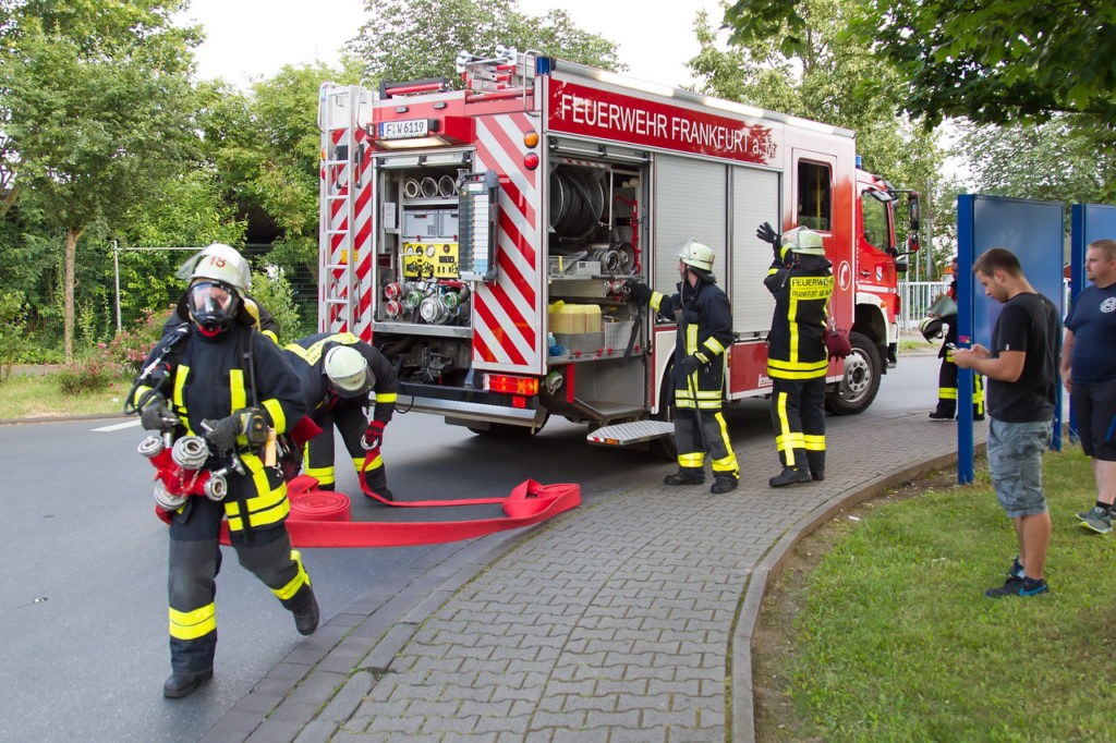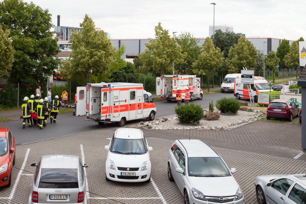 Alarmiert durch die jetzt auslösende Brandmeldeanlage erreichten die Wehren Kloppenheim und Nieder-Erlenbach, dicht gefolgt von der Freiwilligen Feuerwehr Karben-Mitte, den Einsatzort in der Robert-Bosch-Straße. Schon von außen war durch die Scheiben zu erkennen, dass der gesamte Innenraum stark verraucht war. Eine erste Erkundung ergab, dass sich eine noch unbekannte aber nicht unerhebliche Zahl von Menschen im Gebäude befand, woraufhin mit dem Einsatzstichwort MANV 20 („Massenanfall von Verletzten“) die Bereitschaft des DRK Karben alarmiert wurde.