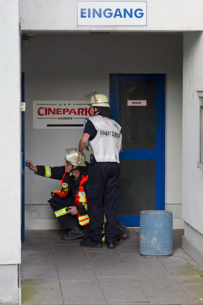 Im Szenario kam es in einem Büro des Cinepark Karben zu einem Schwelbrand, durch den giftige Gase langsam in einen der beiden Kinosäle eindrangen. Die Zuschauer bemerkten davon erst einmal nichts, wurden aber im weiteren Verlauf der Ausbreitung schläfrig oder bewusstlos. Der Betriebsleiter des Kinos bemerkte schließlich den Rauch und wollte einen Löschversuch unternehmen. Durch das Öffnen der Tür zum Büro kam es zu einer Durchzündung, die bei ihm selbst und einigen Besuchern im Foyer zu teilweise schweren Verletzungen führte.