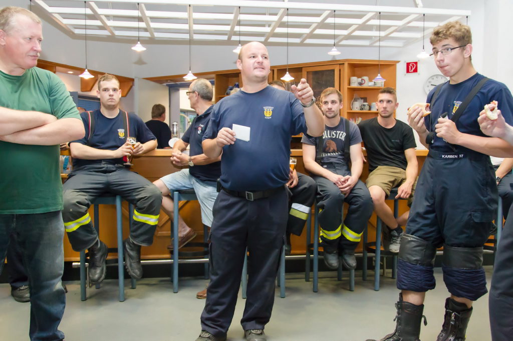 In der abschließenden Übungsbesprechung im Feuerwehrhaus der Freiwilligen Feuerwehr Karben-Mitte, wo alle Einsatzkräfte und Verletztendarsteller anschließend zur Stärkung mit Würstchen und Getränken zusammengekommen waren, wurde von den Beobachtern ein sehr positives Fazit gezogen. Die Abläufe bei der Bewältigung dieses Einsatzes haben sehr gut funktioniert, auch die Zusammenarbeit zwischen den beteiligten Wehren untereinander und mit den rettungsdienstlichen Einsatzkräften funktionierte ausgezeichnet.