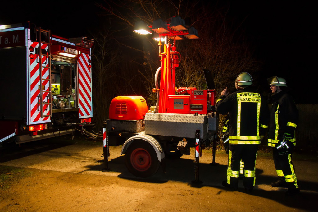 Zur Beleuchtung der Einsatzstelle wurde der Geräteanhänger Licht auf dem Weg vor dem Schützenhaus abgestellt. Trotz der Distanz zum umgestürzten Baum, der sich in der Nähe des Erlenbachs befand, war das Umfeld gut ausgeleuchtet. Ergänzt wurde die Ausleuchtung durch ein mobiles Teklite.